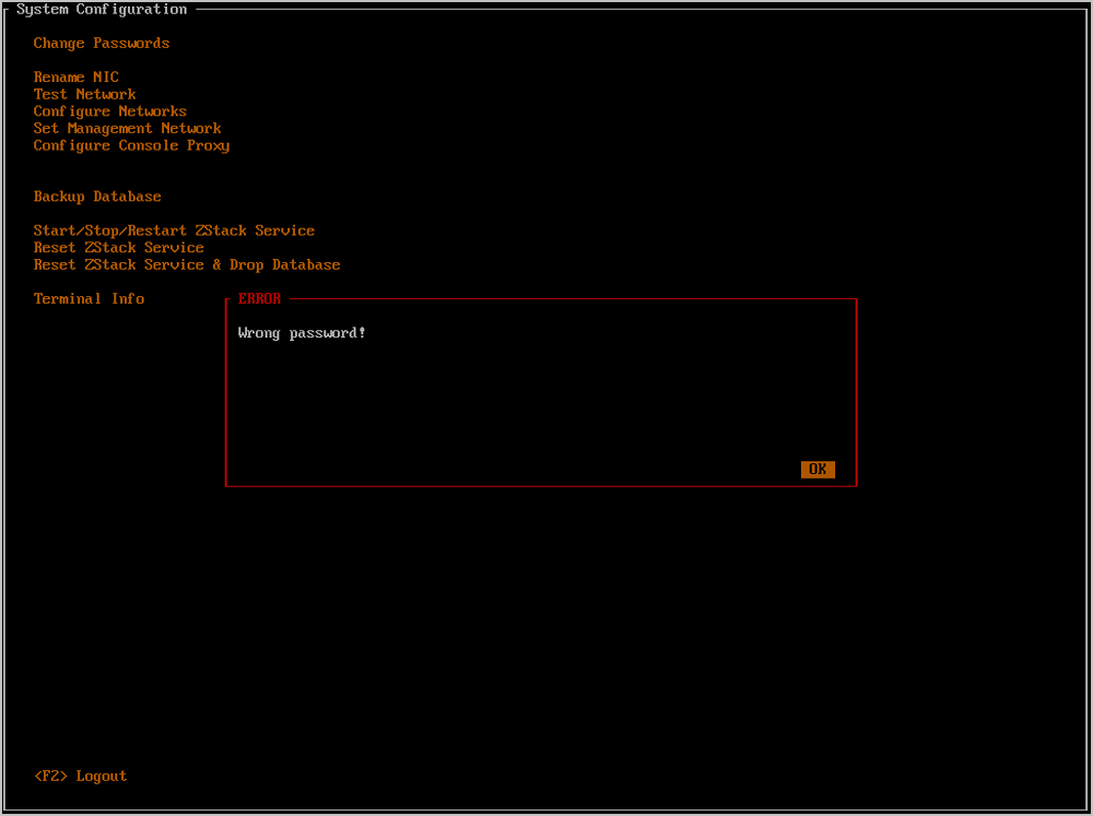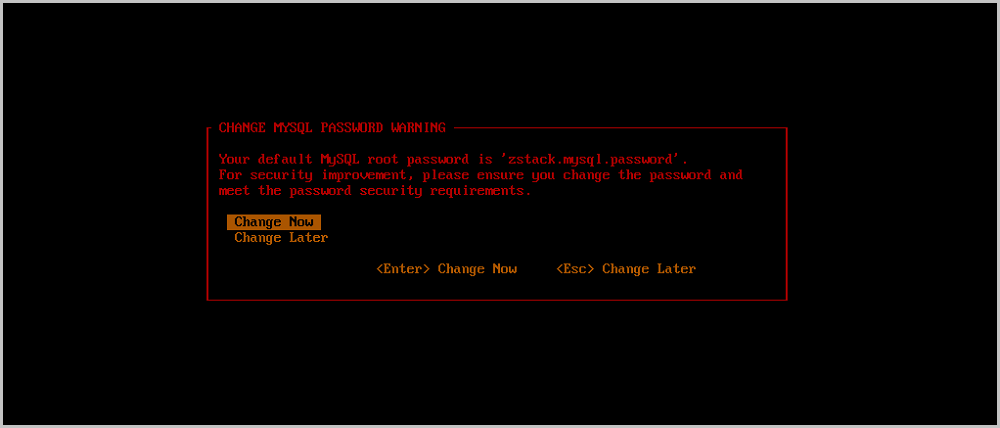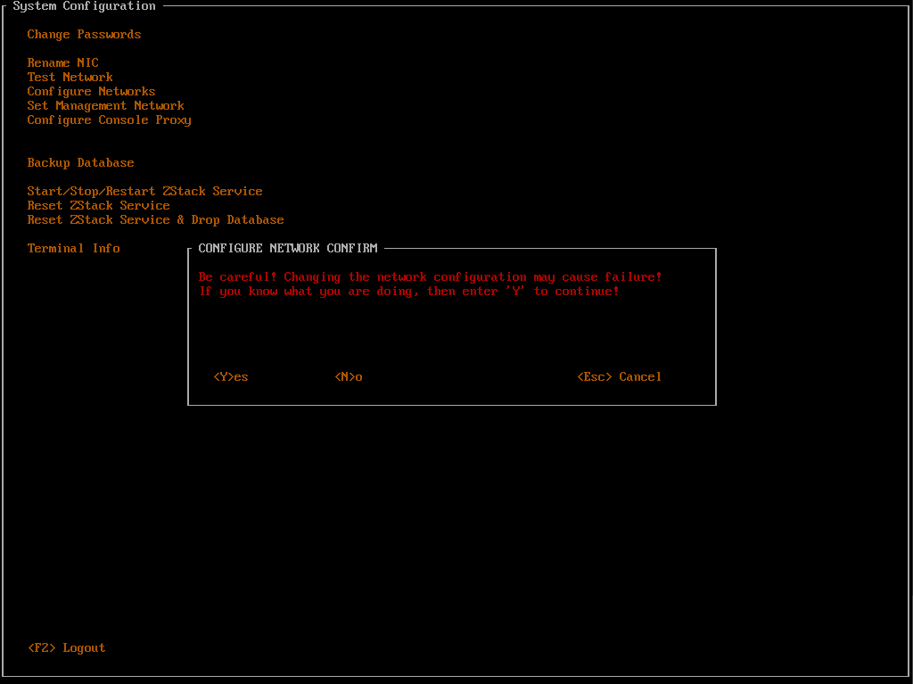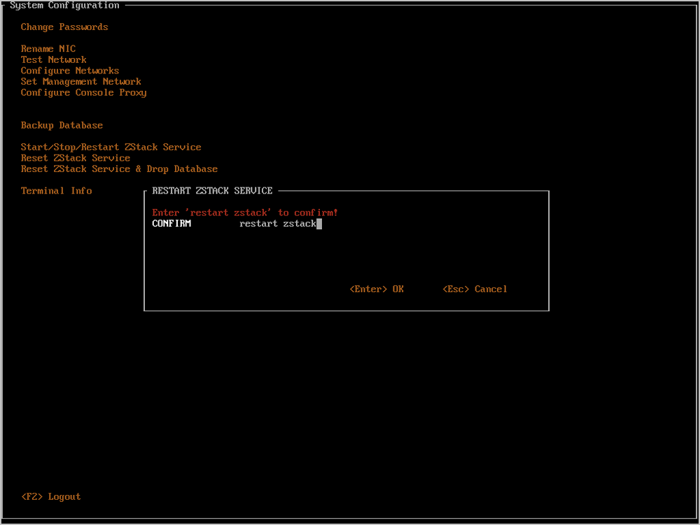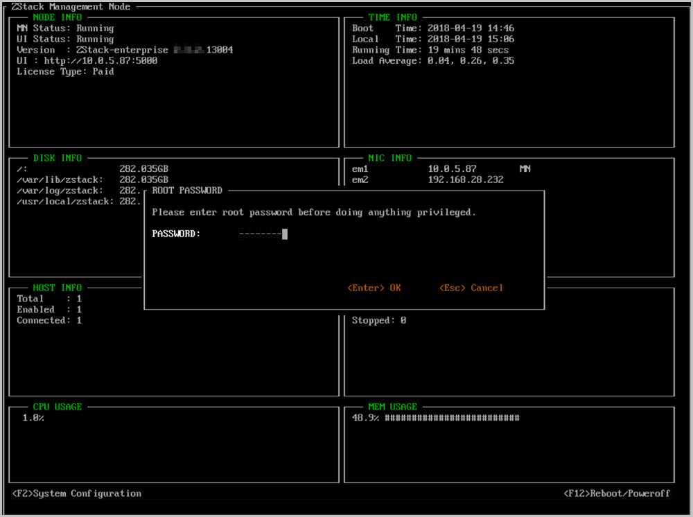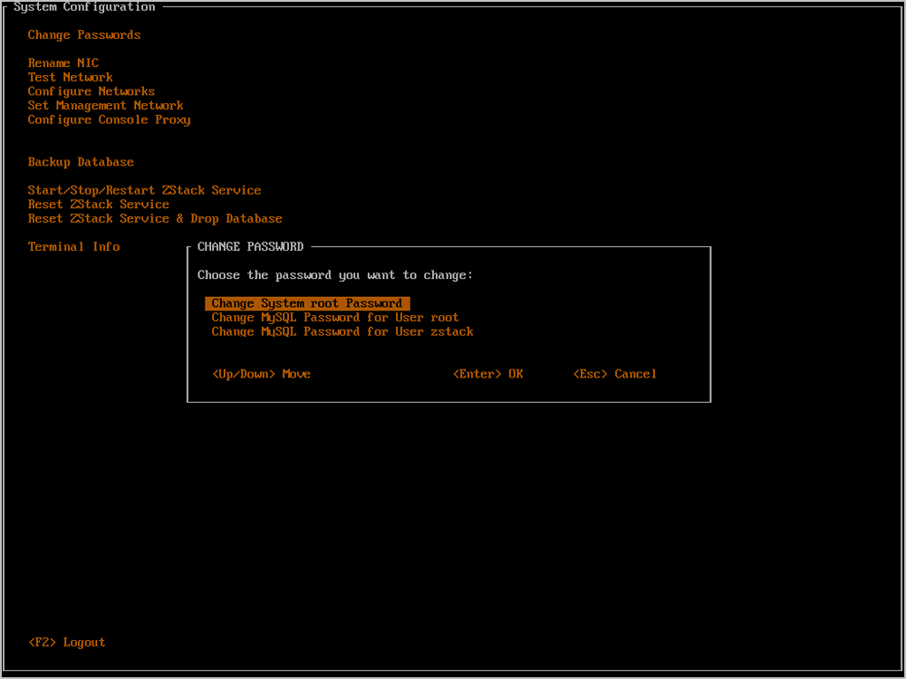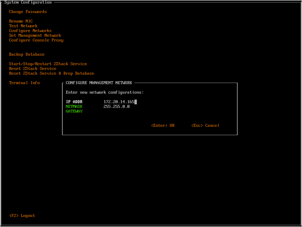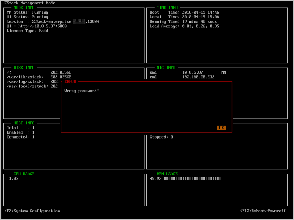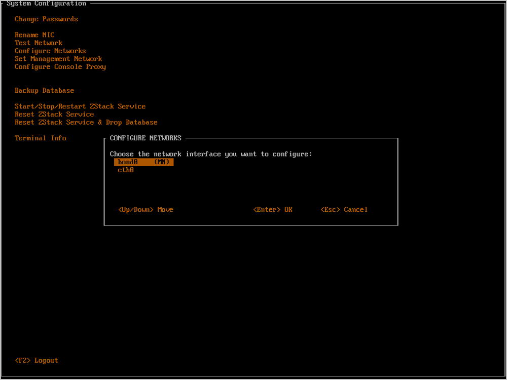 - 任何时候都可以通过按下Ctrl + Alt + F1返回ZStack TUI。