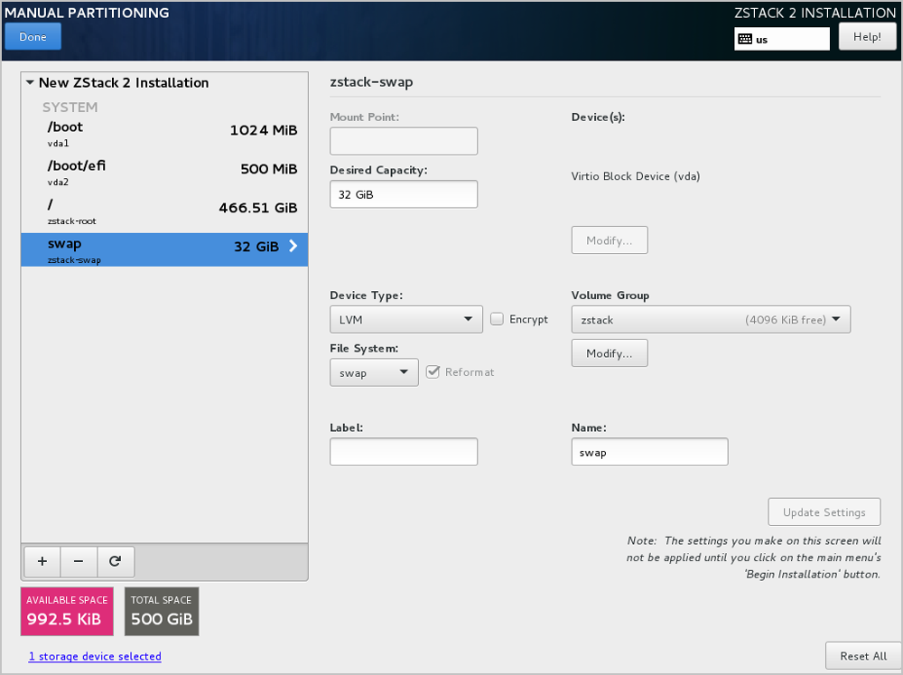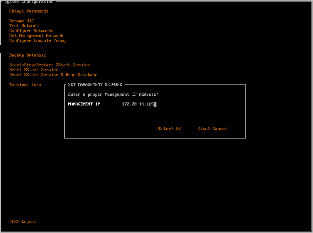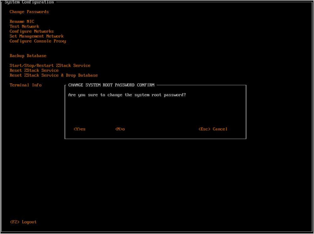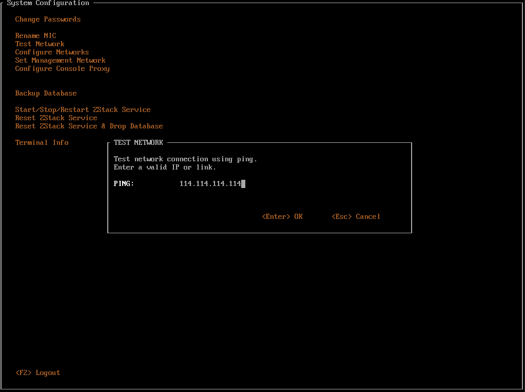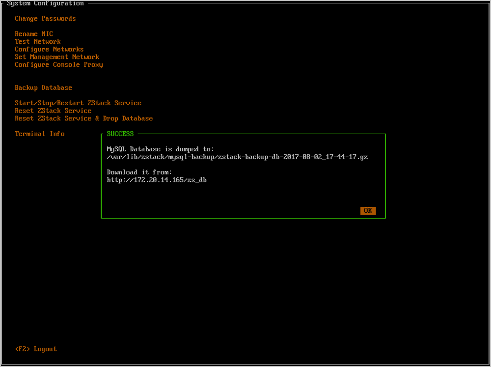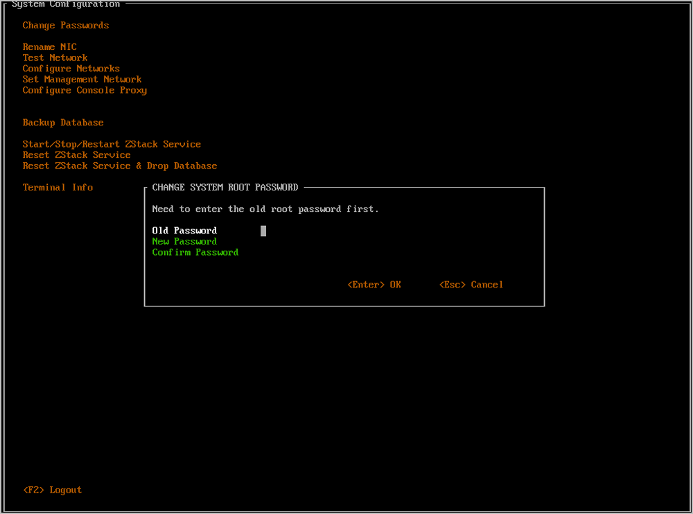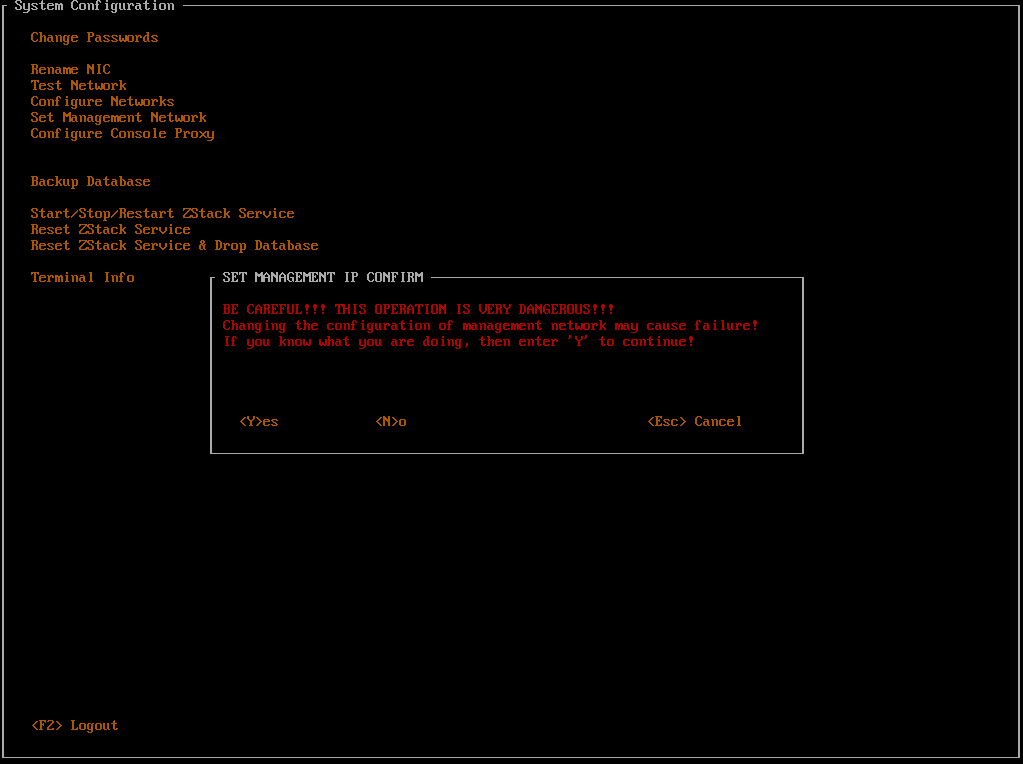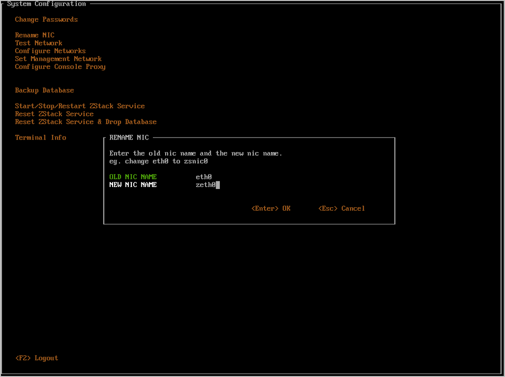 - 任何时候都可以通过按下Ctrl + Alt + F1返回ZStack TUI。