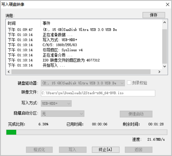 - 其他选项,按照默认设置,无须额外配置,点击写入。