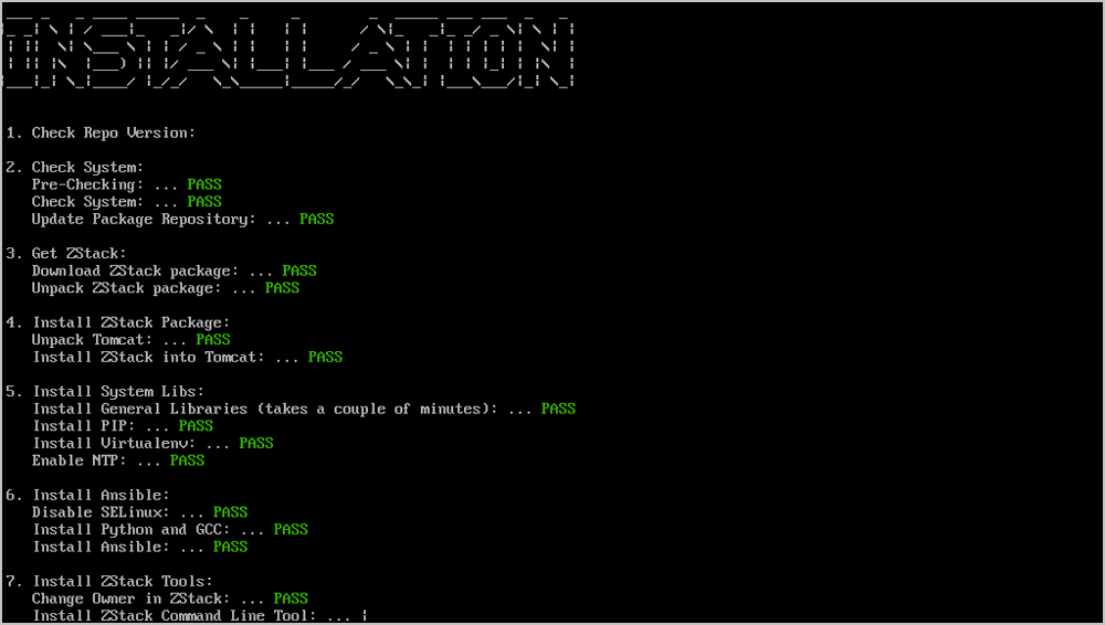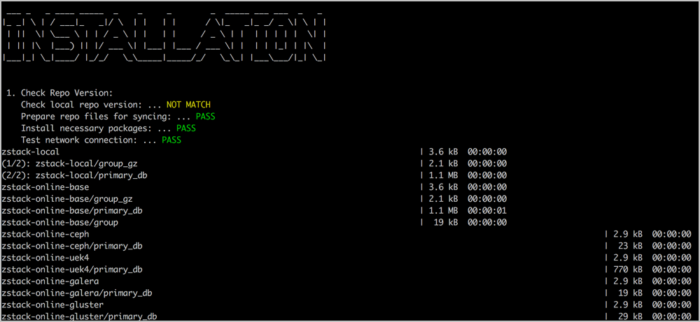 - 如果检测到ISO版本过低,会自动将本地源同步到最新,然后开始ZStack的安装。