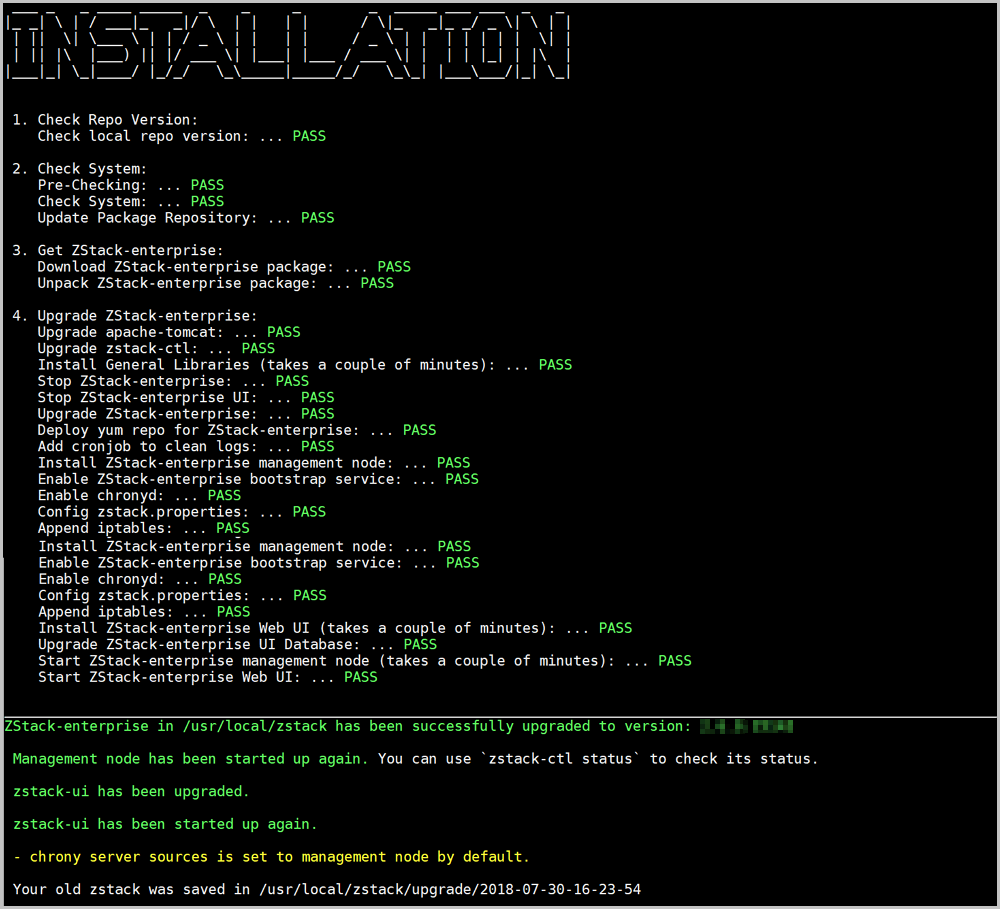 [root@zstack-1 opt]# bash ZStack-installer-3.10.0.bin -u -P MYSQL_ROOT_PASSWORD