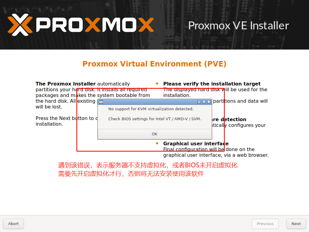 错误信息提示,服务器未开启虚拟化,需要先开启虚拟化,才可以继续下面步骤